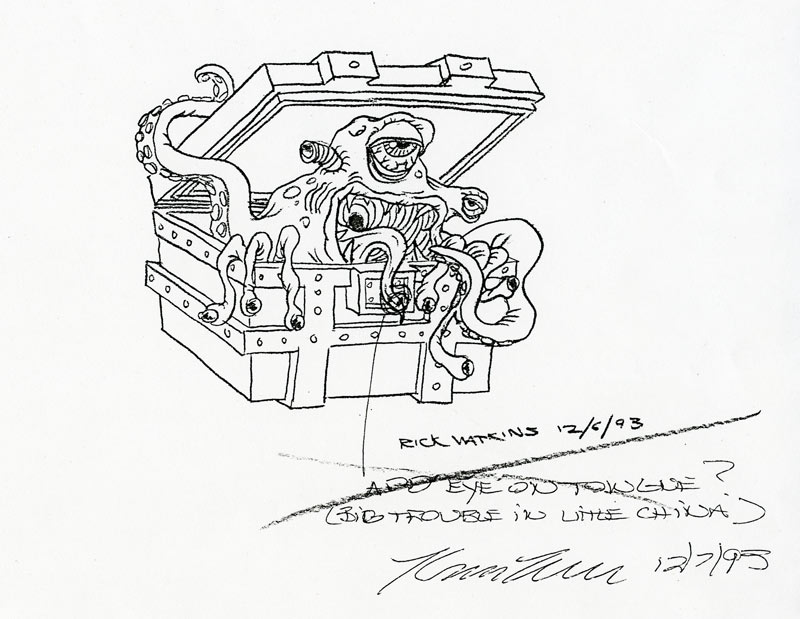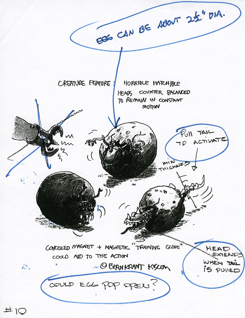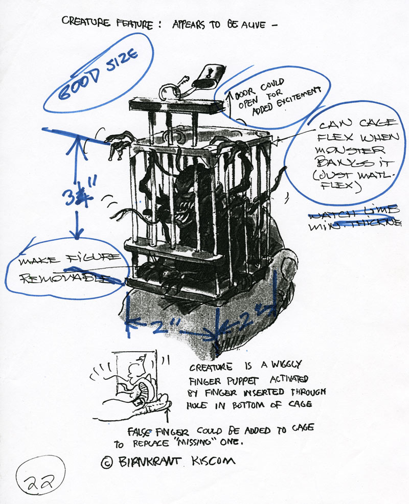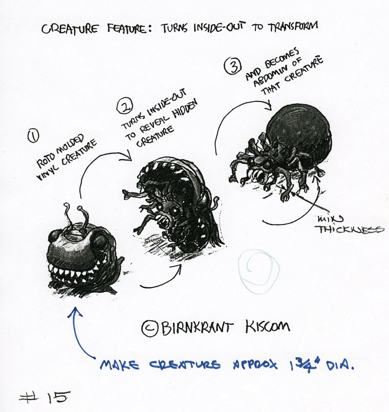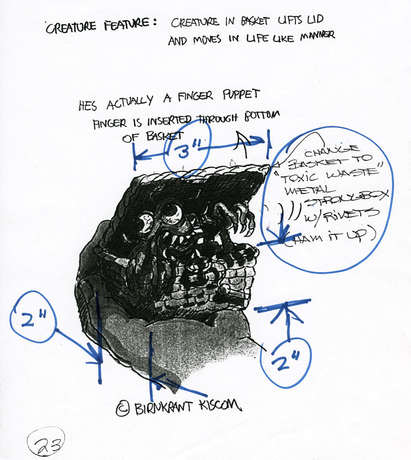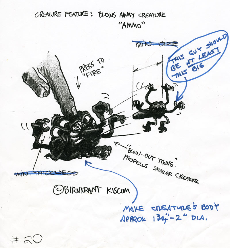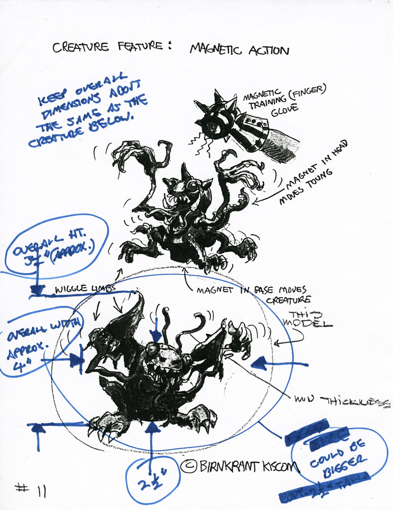 I could hardly wait to dive into this one. It required coordination and anticipation. I immediately ordered a selection of various sizes of plastic eyes, to assure they would arrive on time. I had in mind the possibility of animating the major eyes, and terminating every finger in a tiny eyeball. The drawing originally called for an eye on the tip of the tongue, but someone at Kenner crossed it out. The tentacles were a brilliant touch. I could see this was destined to become my favorite one.