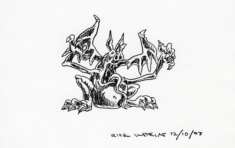 Below, is Rick's reinterpretation of the critter above. He also ordered a new, more Gothic-looking spoon that I faithfully replicated. But in the end, it did not make the cut.