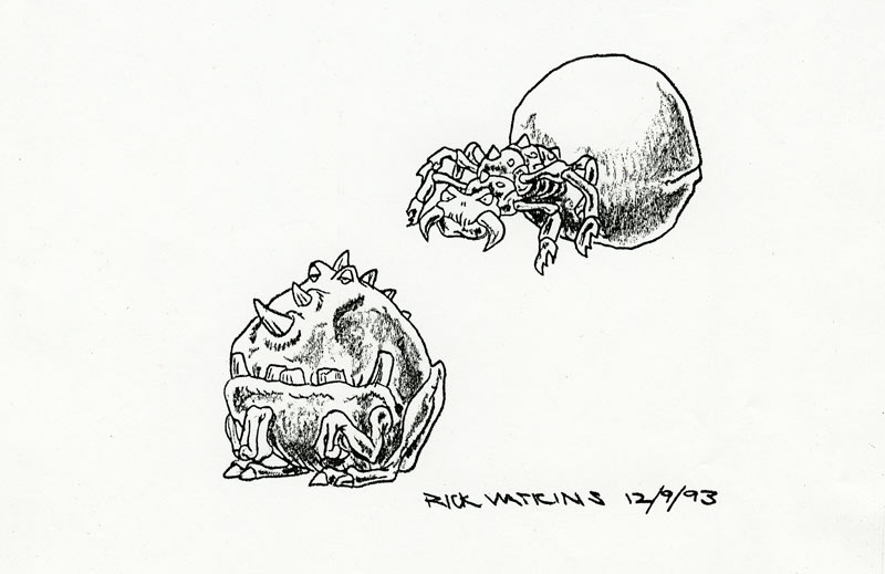 This attempt struck me as change for its own sake. Rick was flexing his muscles. I felt that the eyes on both the creature and the spider variation were far too small to clearly read. Nonetheless, I aimed to please, and not make any waves.