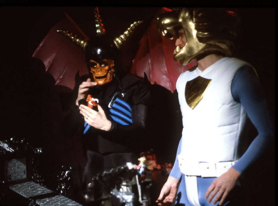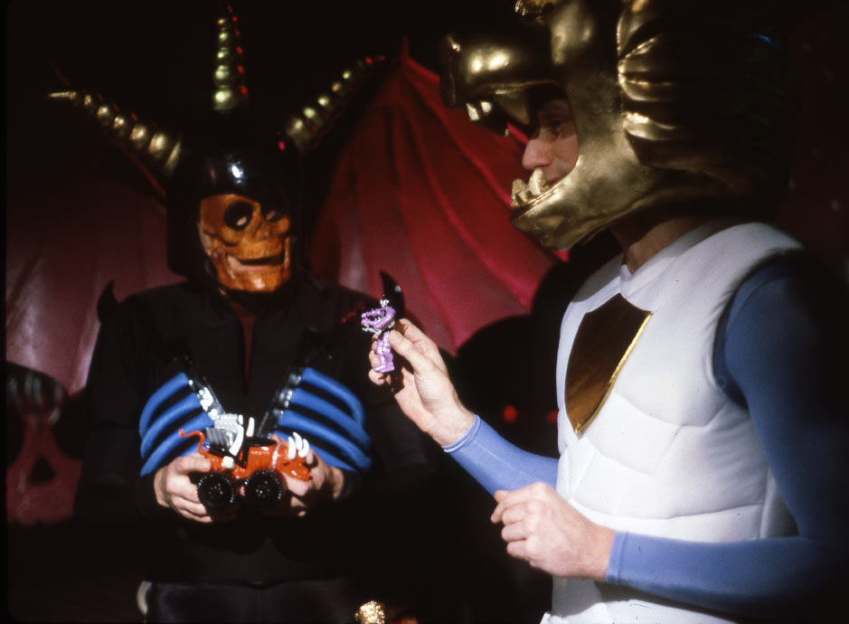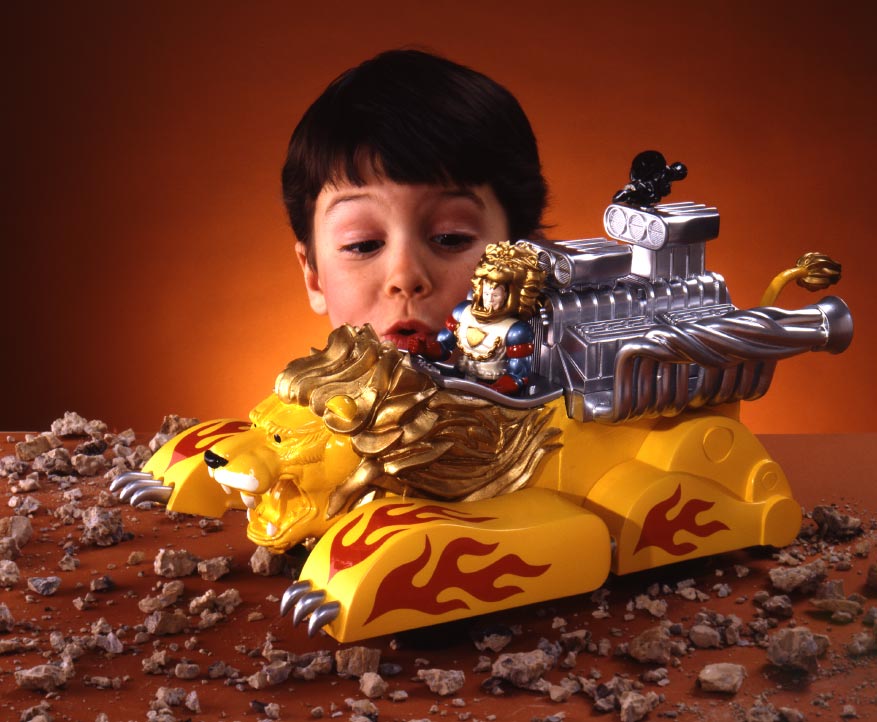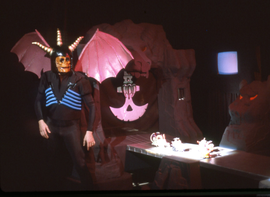 There was a big dark spooky area in the Schaper showroom that replicated the Light Side and the Dark Side with creepy colored neon and a huge model of the Bridge of Doom, awash in ghastly shades of garish green. A couple of handsome, but hammy, actors in full costume did their impersonations of X-Tinctor and Max Action. And when they weren’t doing their shtick in the Shaper Showroom, they stalked the halls of Toy Fair or wandered outside to Fifth Avenue to join the throngs of other costumed characters, who loitered around the front door.