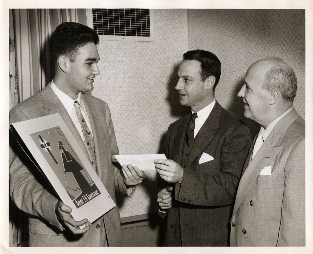 The second photo captures the moment the head of the Detroit Tuberculosis Sanatorium handed me the $35. prize. I vowed that I would save it to pay for my College education.