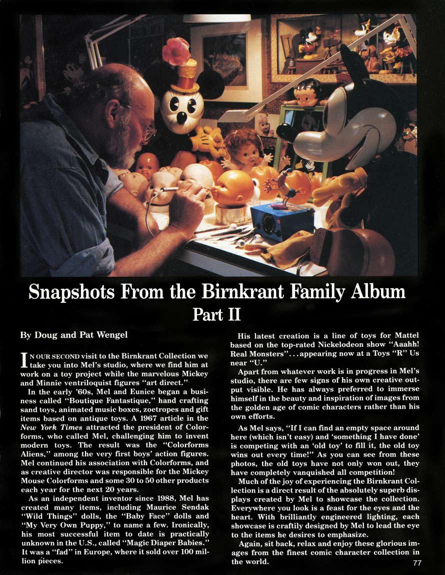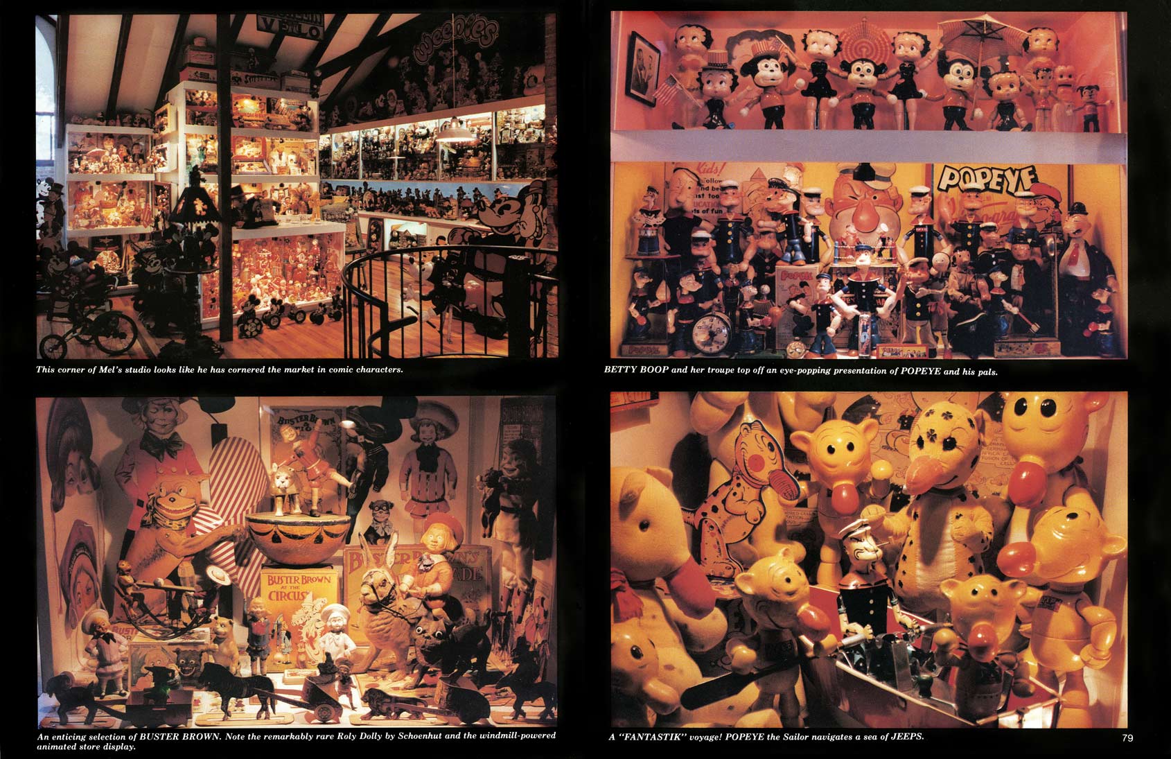 A year after Celebrating Celluloid, Pat and Doug Wengel came back again, proposing yet another article. This one would be bigger and better, and appear in two consecutive issues of Antique Toy World Magazine. Here, for the first time, I agreed to let an overview of the entire collection be seen. This marked an abrupt turnabout in attitude for me. For thirty years, I had maintained a kind of secrecy, selectively shunning publicity. Now, I was going public, so to speak. The price of Comic Character items had climbed about as high as they were ever going to go, and it became clear that striving for anonymity was not about to keep them low. I fantasized that letting the collection be known, might make more dealers prone to offer interesting things to me.
