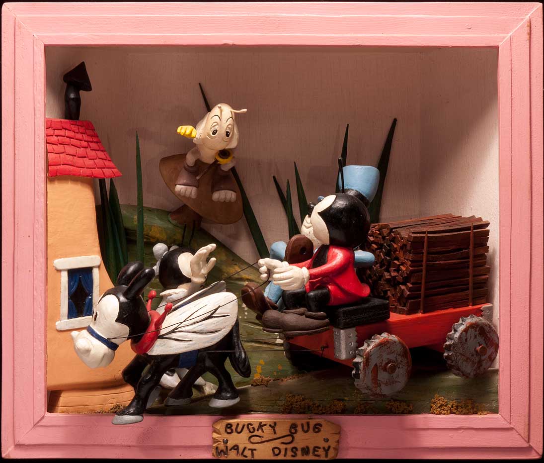 Last of the four, is Bucky Bug. How I loved this offbeat comic strip when I was a kid! This carving exemplifies Charles’ playful tendency to not supply a single straight-on perfect viewing angle. Here, two main Characters, “June” and “Bo”, are only visible from above and to the side. And Bucky's head is turned away.