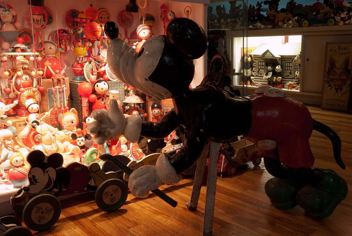 Many of the most spectacular objects in Mouse Heaven, especially those that came from France, are here thanks to one man, Pierre Boogaerts. Pierre is a far seeing insightful dealer author artist. He wrote the first book on collecting Robots in 1978, years before they were popular. Having done that, he moved on to the next up and coming thing. Pierre was always years ahead of everybody in forecasting trends. And I am thankful that he focused his amazing powers of discovery on finding treasures to offer me. Anything in Mouse Heaven that is big and spectacular, and French, is, no doubt, here, thanks to Pierre. Especially, the parade of Carousel Figures that he steered my way.