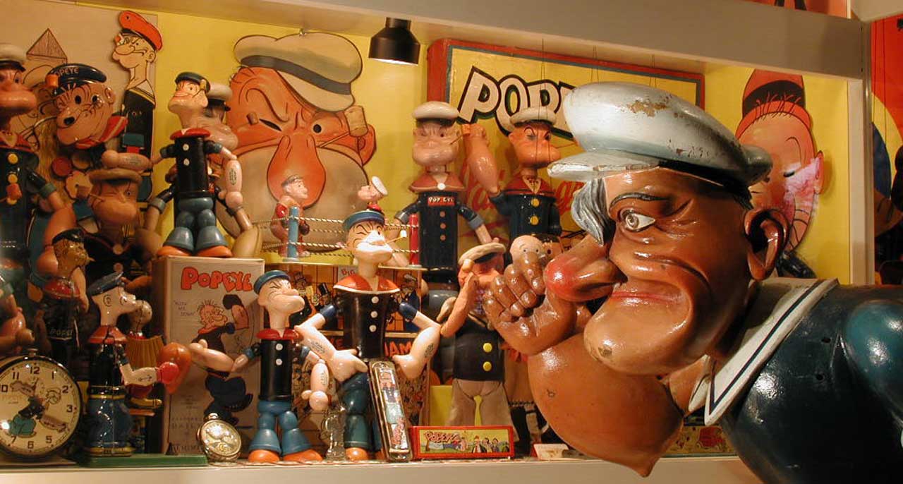 “I yam what I yam!” I heard his exclaim. Comic Characters always say the same thing. Then, flashing a big toothy grin, this awesome effigy, I always called “The Walking Mickey”, gently warned me, “I can be friendly, But Keep Your Hands Off Me!” and walked away.