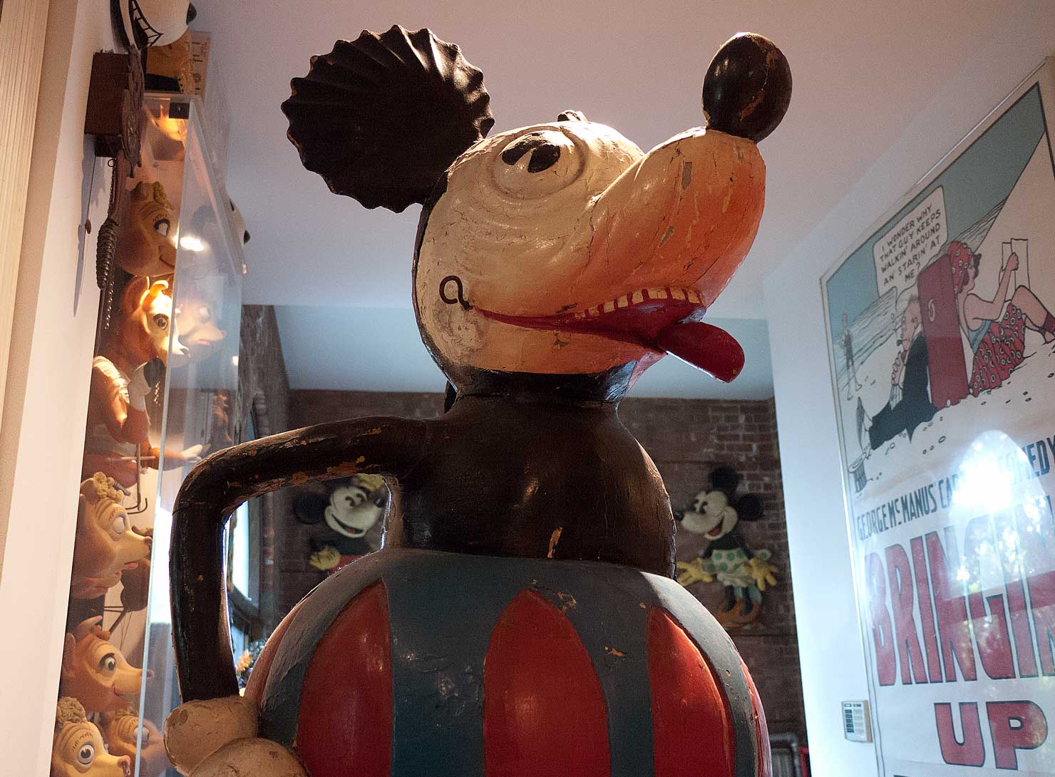 Meanwhile, I learned more about the carvings. They had been the crowning decorations on a French Carousel. I had no concept of the iconography of Mickey, European style, in 1973, so I didn’t realize that my rule, regarding Pie-cut eyes, might not apply. These objects could have been patterned after the rolling eyes on the first English Mickey dolls by Deans, circa 1930. Not that it mattered, for I had taken yet another step forward, and embraced these works of art for what they were, Works of Art!