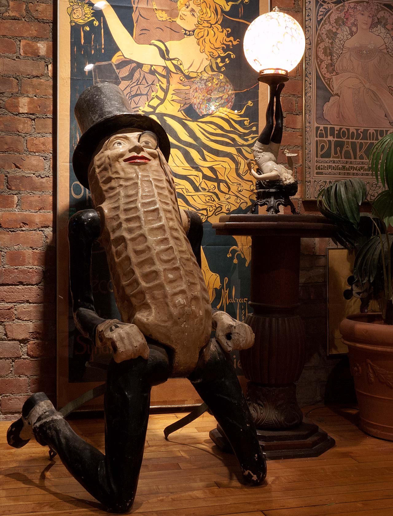 Elsewhere in the house, apart from the Mr. Peanut Costume, which has cropped up in many photos already, are two more rather nice Mr. Peanut objects. The first, I have had for 45 years. He is the figure that is intended to be riding on the barrel of a peanut roaster. At the time I got him, in NYC, there were rumors that the roaster he belonged on was going to show up, any day. It always eluded me, So here he stands/sits, waiting.