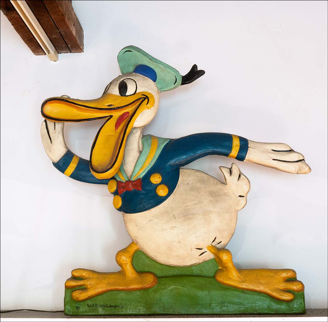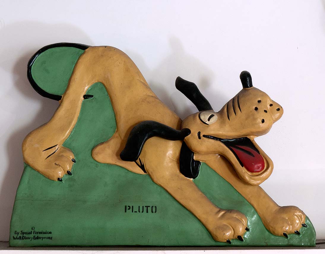 Several years later, my friend, Eliot Sherman, discovered four Old King Cole figures: an animated Mickey and Donald, and still figures of Pluto and Minnie. They were not exactly figures. They were more like bas-reliefs. And he offered them to me for a sum that rhymes with “many” thousand dollars. Huh! My house cost little more than that! But, as my wife might say, in one of her olde English expressions, “There’s more than one way to skin a cat!” So I made a counter offer: If Elliot would lend them to me, I would make two sets of copies, one for him, and one for me. Elliot, who has an unconventional imagination, instantly agreed! And so, I did!