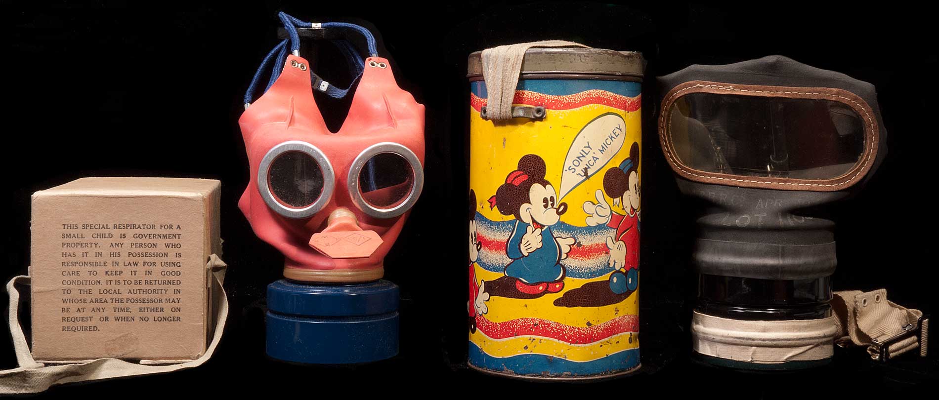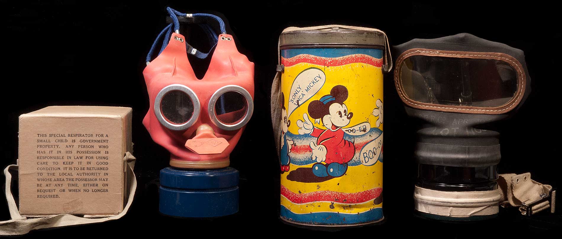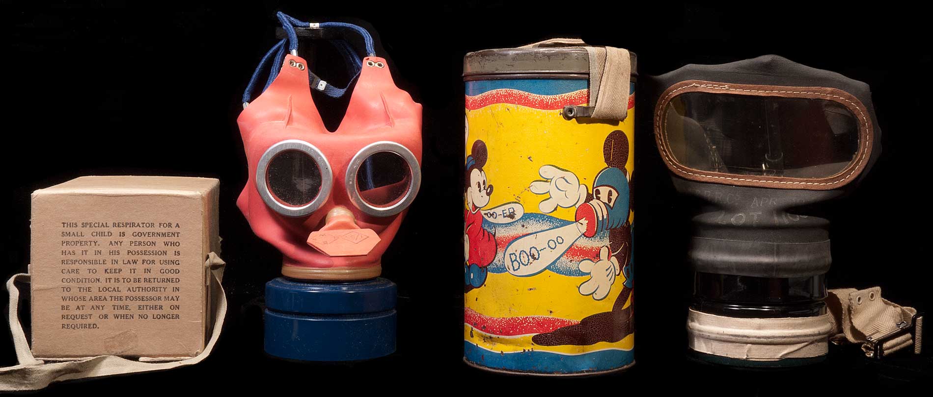 I suppose, as this page is dedicated to masks, the Mickey Mouse Gas Mask should be included here. My wife, Eunice, being English, remembers these. Years ago, she asked her dad, in Dover, to try to get me one. He did! I must confess, I was a little disappointed. It did not look the way I imagined it would be. It took me a long time to embrace it emotionally, and I must confess, I never fully did. It is more a Mickey, in name only, than in visual reality. I saw it more as a myth than a hit! Over the years, several of these have found their way to me. This one, in the box, is as good an example to show, as any.