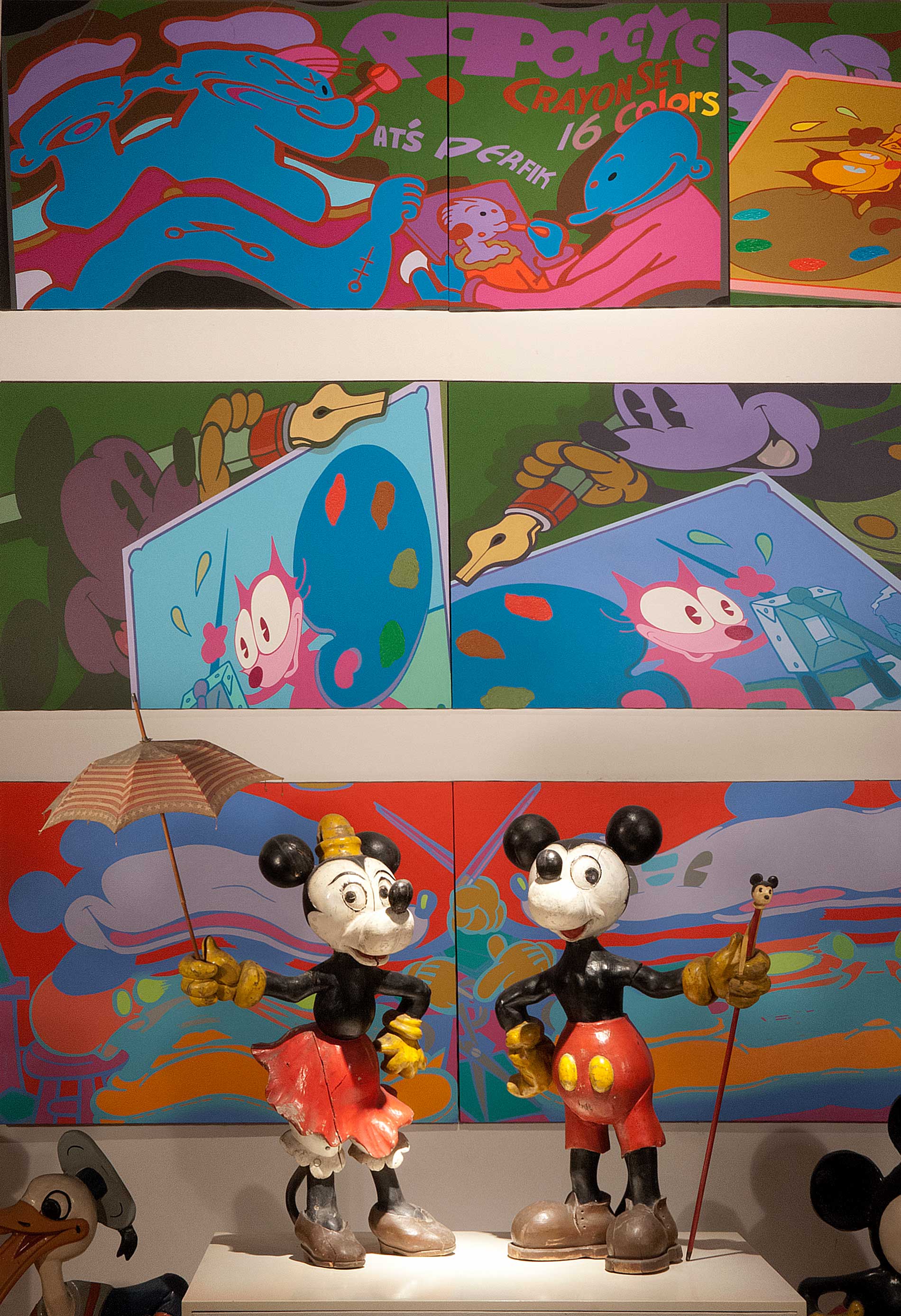 His first attempts were mild. He would choose a section of existing art and photograph it on an angle, then paint it on a canvas flat. Each canvas was three by four feet. He had a show of these at OK Harris, and it was very successful. He even rendered a section of a toy I made called, "Tricky Mickey". It looked exactly like the toy to me. John told me he was about to make me famous! Actually, Ivan Carp bought that painting, himself, for his own collection, and it, also, became the image he chose to advertise the show. Nonetheless, my promised fame failed to show up.