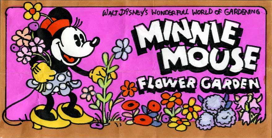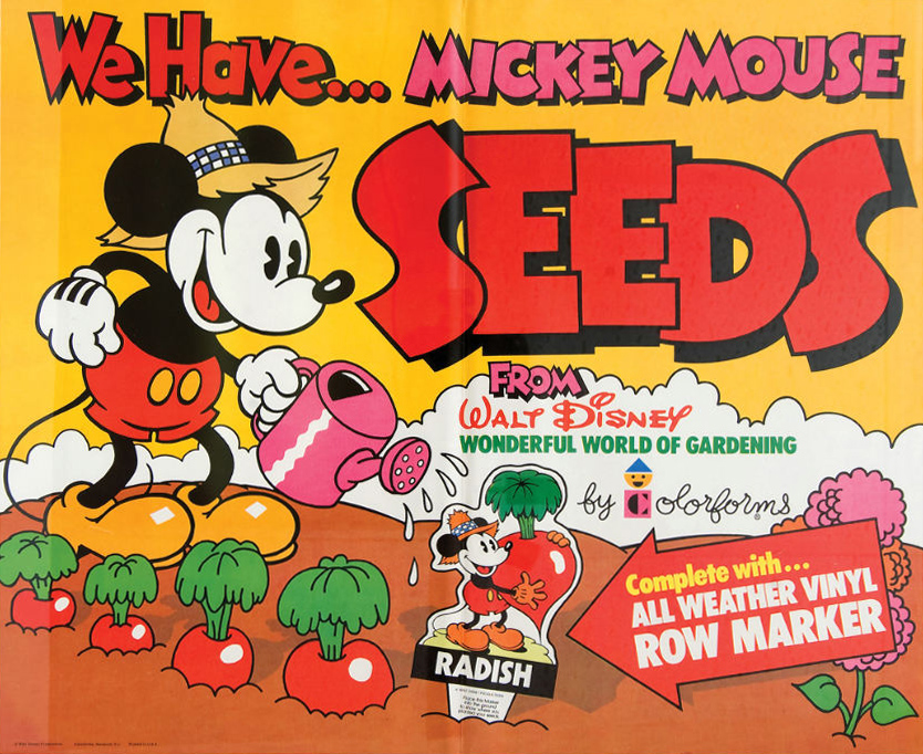 Each package of seeds came with a waterproof plastic row marker that carried through the Disney theme. So after the seeds were planted a Disney Character remained to mark the place. While waiting for the seeds to grow, at least, a kid could look at it. And even if nothing eventually appeared, by then, he probably didn’t give a darn. There was a kind of Disney pay-off in the row marker itself.