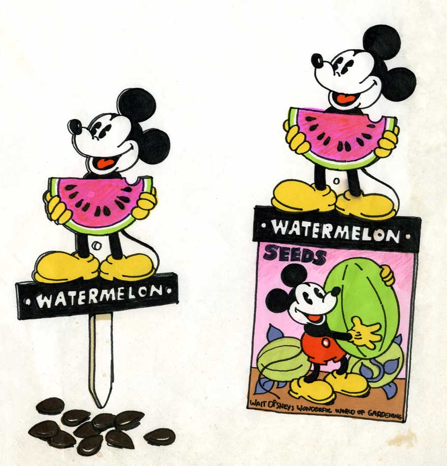 The Mickey Mouse Seed shop did not sell well. The plastic markers were deceptively expensive, so these had to sell for more than ordinary seeds. That, combined with a credibility gap, made them hard to sell. When you plan to plant a garden, who would you believe, Mickey Mouse or Burpee seeds? Well I, for one, would choose Mickey seeds, wouldn’t you? Provided a live Mickey Mouse is what they grew.