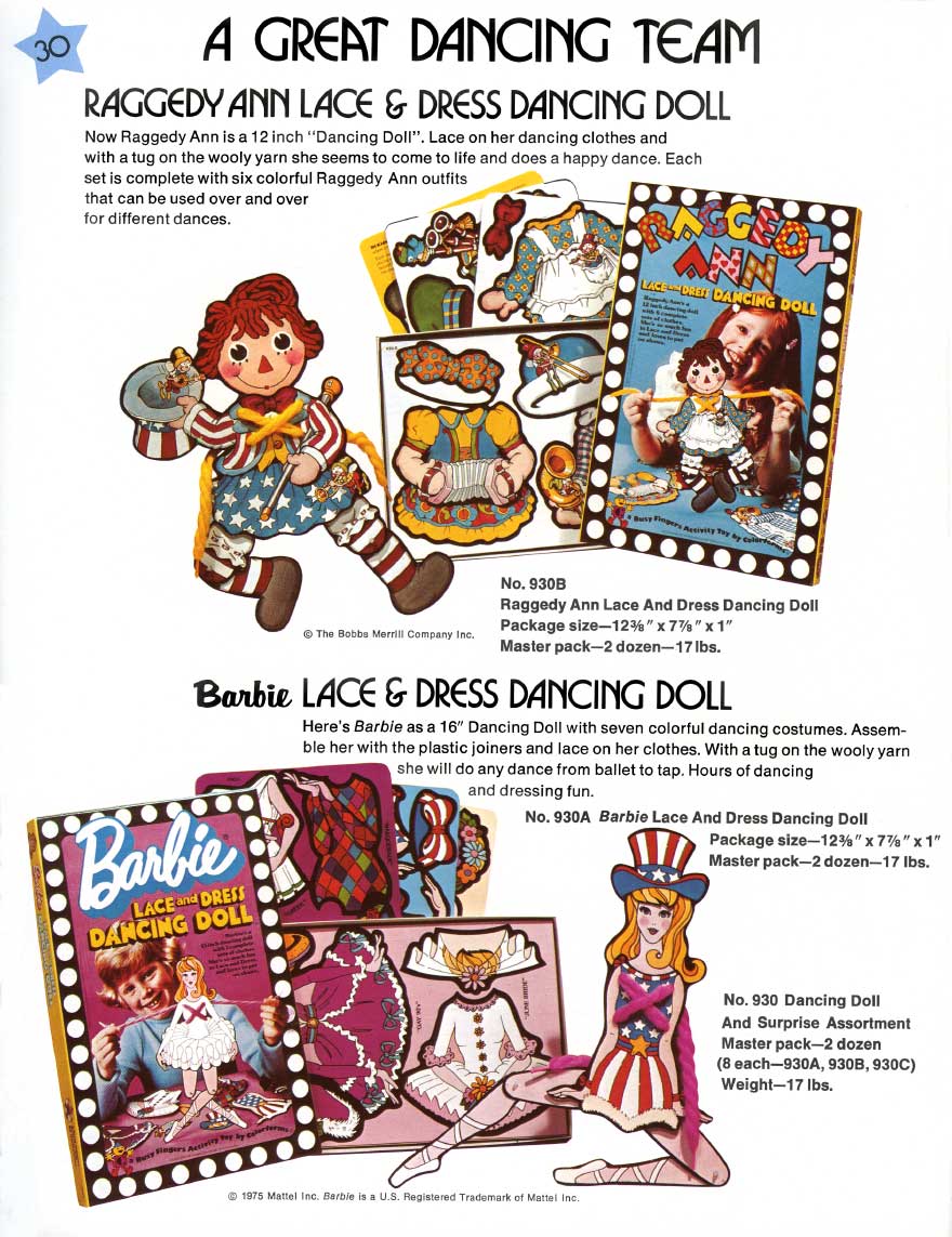“Lace & Dress Dancing Dolls” were added to the line. Bill Basso, was as busty as ever working mostly on the Classic Colorforms line. But briefly set that work aside to create the contents of “Lace & Dress Dancing Raggedy Ann”. Mike did the Barbie, and the Packaging for It and Raggedy Ann. Once again, That is his daughter, Gretchen on the cover, now a year older, and living in New York State.