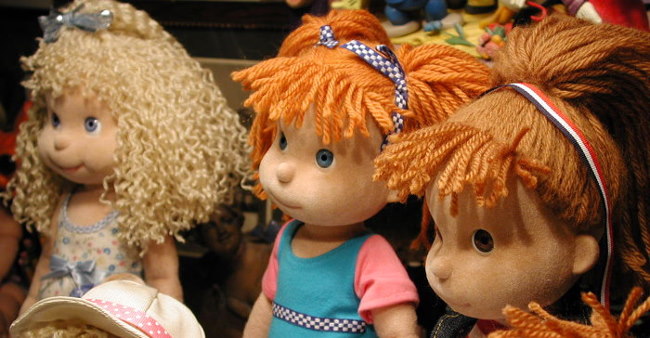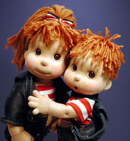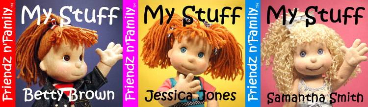 ![]() Here the dolls are almost finished and ready for presentation. They are still waiting for their rosy cheeks, eyebrows and eyelashes. Here is Betty Brown with Bobby! Meet Jessica Jones! And, Samantha Smith! Each doll came with a Scrap Book and a kit full of "Stuff" to decorate it. k