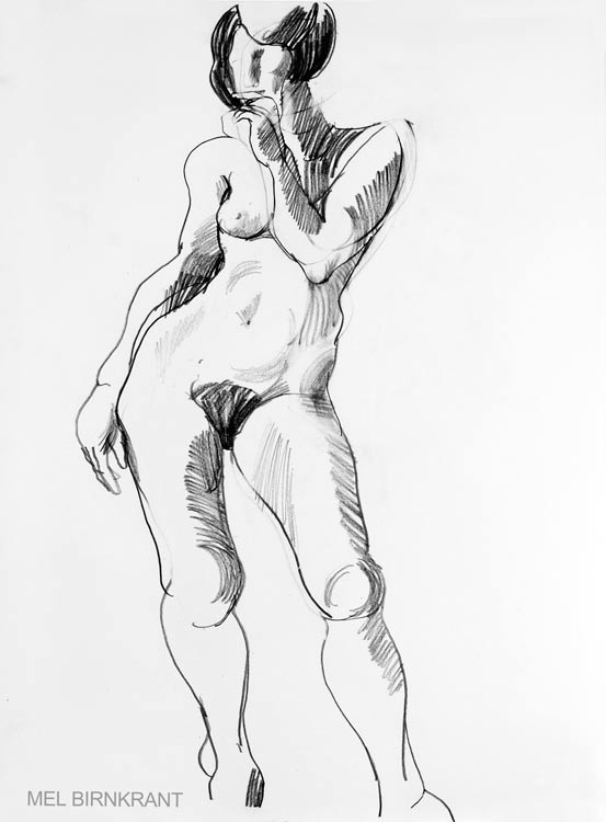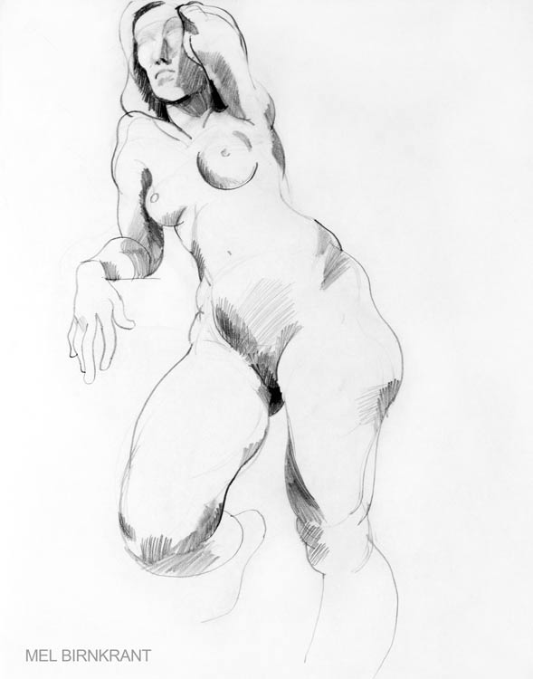 Waiting for each new pose to begin, I turned off my consciousness, and prepared to dive right in. Like an athlete, who all his life had trained for an event that required only a few seconds to take place, this was the moment of truth, an opportunity to ascertain where all those years of doing art had carried me. For a small fraction of eternity, I would not try to please anyone, but me. There would be no contriving, no composing, no rethinking, or second-guessing, and above all, absolutely no erasing! There simply was no time for any of those things. This would be an exercise in total honesty. I stood behind my easel, which was the starting gate. My oversized drawing pad was opened to a clean white page, and locked in place. And once the model settled into a pose that everyone agreed was OK, I rushed forth with abandon, and began the race!