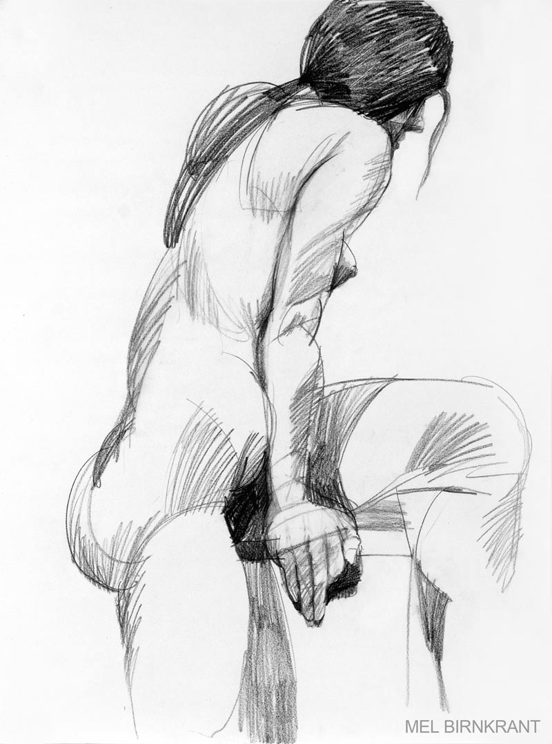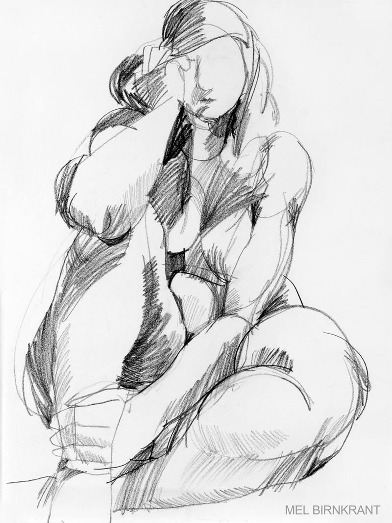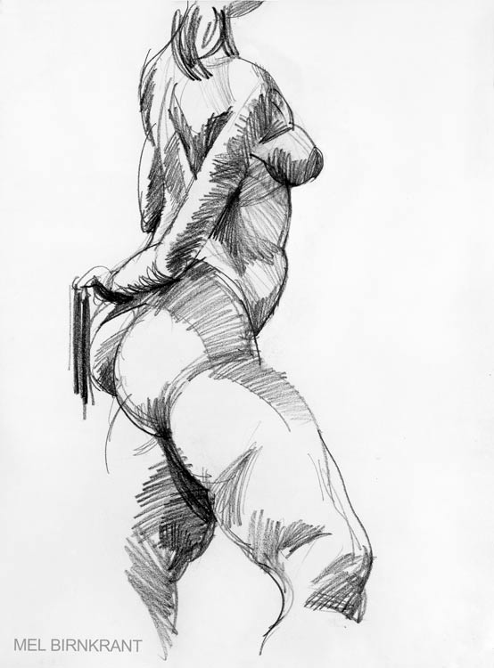 I was also inclined to scribble. This was born out of excitement, as I tried to beat the clock, and capture the pose in the fleeting time allotted, usually twenty minutes. I never lost sight of the fact that twenty minutes was all the time I had. Therefore, I worked feverishly, at lightning speed, to capture all the information I could gather, and throw it at the paper.