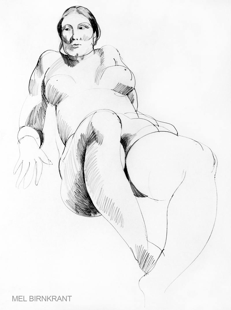 All the drawings gathered here began in the loft above mine, on Lexington Avenue in Manhattan, in 1968, or maybe 67. At that time, my upstairs neighbor, Haig Adishian initiated a weekly life drawing class. I had not done any drawing, since I attended the Academy Julienne in Paris, ten years before. Over those ensuing years, I had given up all hope and pretense of ever being an artist. Now, as it no longer mattered if my drawings were good or bad, I found this lack of importance had freed me to view figure drawing as a kind of sport, a pleasant pastime to be enjoyed, just for fun of it. The first drawing that I did on that occasion is the one below.