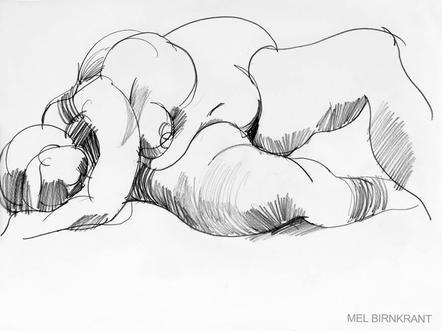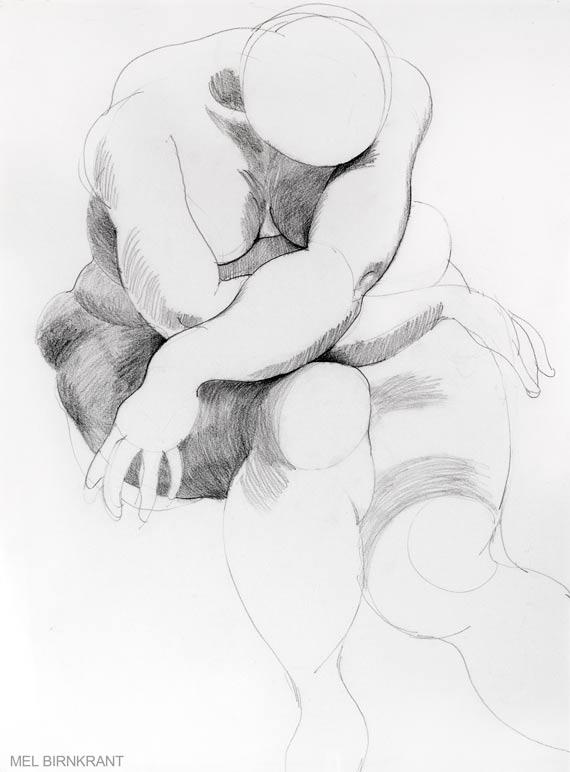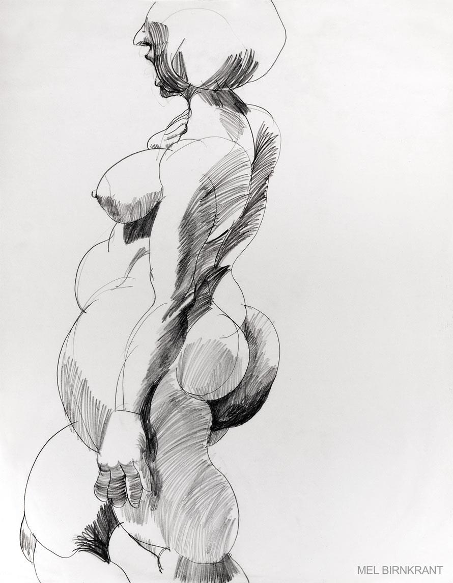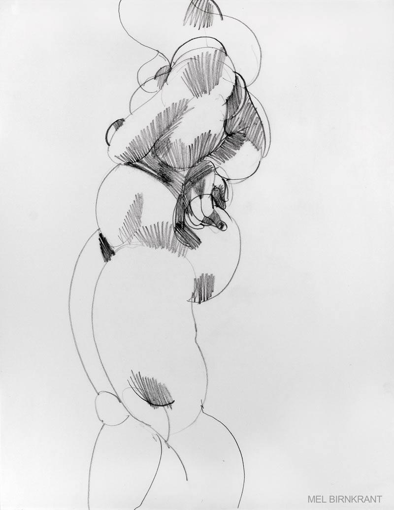 The group of drawings that follow were from those early days, as well. They were fast, bold, and often, out of control. I was using the ebony pencils I had from Paris, on rough paper. So the lines were darker, and sometimes, reminiscent of charcoal.