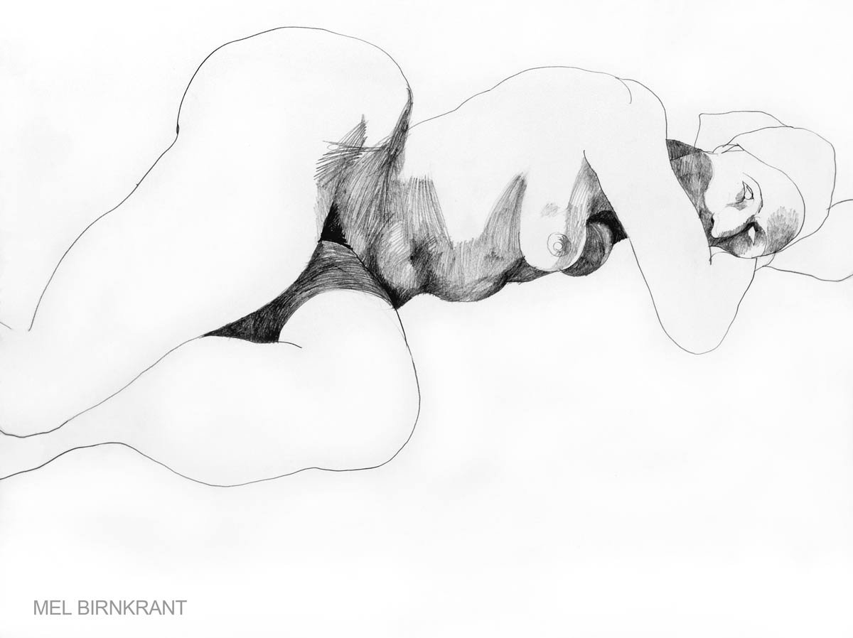 This extremely large drawing was a long pose, three twenty minute segments. Here, I carefully planned the composition and placement on the page. Then, I meticulously tickled in the shadows. I really do not favor drawings, like this, in which I get too consciously involved.