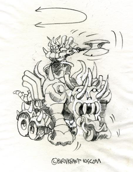 The key to the Battle, maybe the key to our own destiny, are the Creatures. For the Knights of Light and Darkness have captured and trained these fabulous Creatures of our Dreams and Nightmares to be ridden into Battle. They are fitted with outrageous armor and wild weapons, and dubbed the “Knight Creatures.”