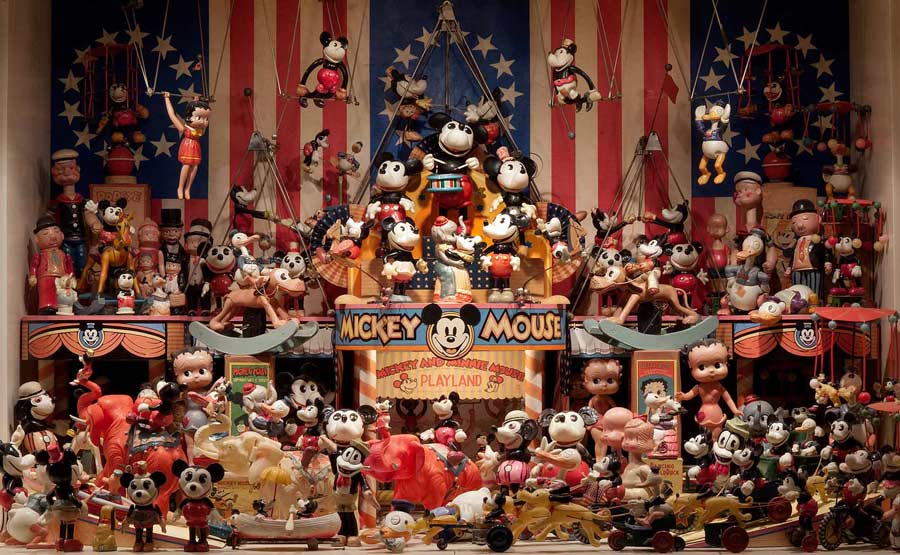 Mel’s private collection in his home in upstate New York doesn’t seem of this earth. It’s impossible to wrap your brain around the idea that this “Mouse Heaven”, as he calls it, a mind-boggling museum of Mickey Mouse and other toys of pre-World War II comics characters, was created by just one man. It is a genius work of lost art, a museum of dreams.