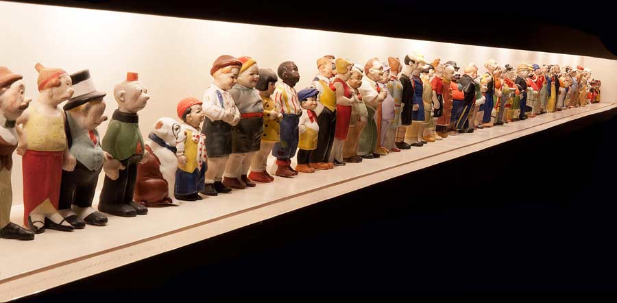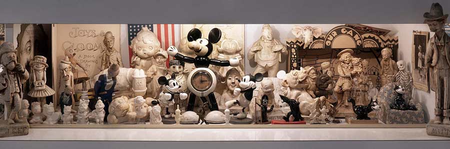 “A collection, like this, can only happen, once in a lifetime, and by some twist of fate, that lifetime happened to be mine. For better, or for worse, the likes of it could never be amassed again… To duplicate what you are about to see would require just three things: 1. Infinite resources. 2. A Time Machine, you’d have to be there, either living from 1890 to 1945, or be in attendance at all the great flea markets, antique shows, and toy shows on the East Coast, for the past 50 years, and be able to run faster than me. And, finally, 3. You’d have to BE me. All this only looks haphazard, actually, its unified by a single vision. Everything here is related, It all goes together, in a way that few perceive.”