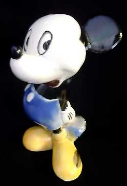 Meanwhile, early on, I had been bitten by the collecting bug, And, naturally, the objects I collected were directly related to Walt Disney. Beginning at the age of five, I became obsessed with collecting Disney ceramic figurines, made by Evens K. Shaw of American Pottery. These came closer than anything made, in those days, to looking like the Disney imagery that one saw only in the movies. Piece by piece, I got them all, even though, they were not all great. Bambi and his friends were OK, But the Dumbo series was badly painted, in shades of pink and gray. And Fantasia was far from fantastic, but I had them anyway. Ironically, the one that I liked least of all was Mickey. Then again, there were a few, such as Pinocchio, on his way to school that drove me crazy with its sheer beauty.