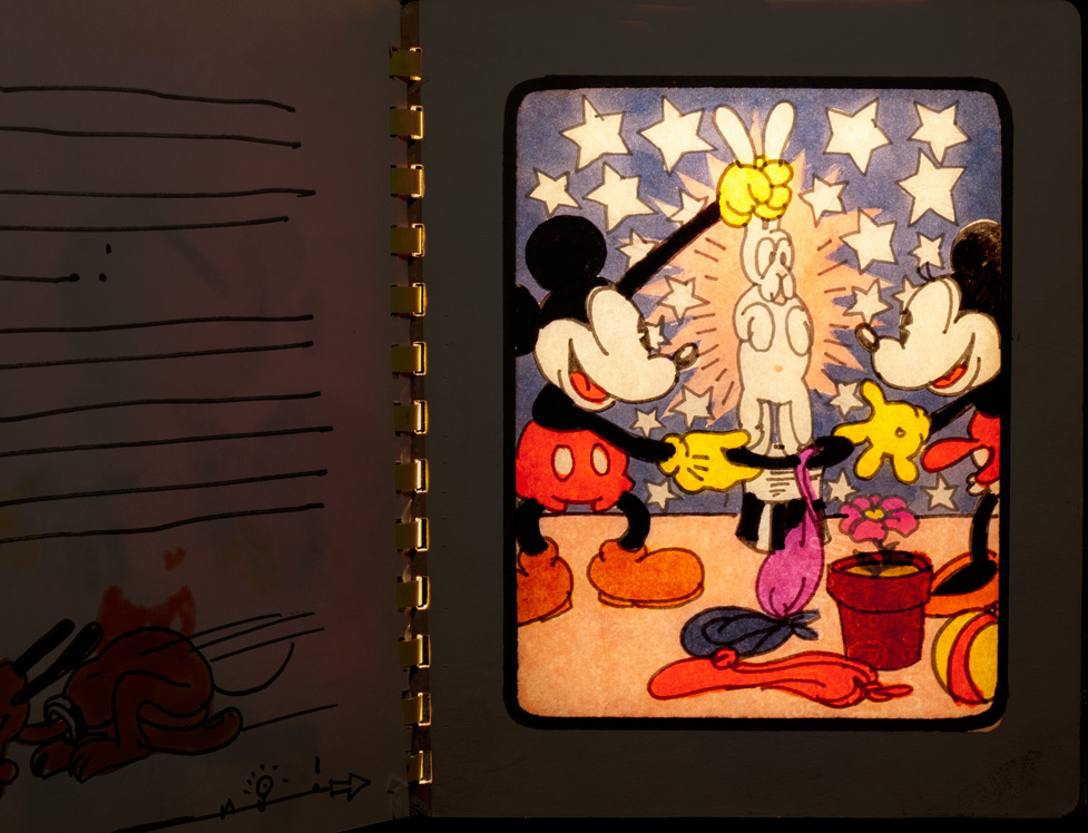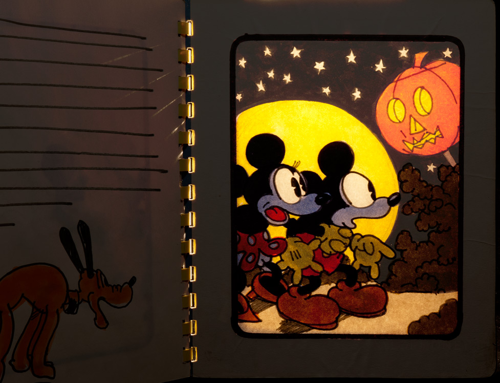 These Mickey graphics were based on imagery from a 1934 Mickey Mouse coloring book. I don't know why this project never happened, but the principle was later adapted to become a “Holly Hobby light-up Doll House,” and “The Mickey Mouse Magic Glow Fun House,” two elaborate Colorforms Play Sets. Meanwhile, both Harry and I were getting used to seeing a lot of Classic Mickey.