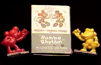 Around 1950, there appeared a variation on this novelty that featured Mickey Mouse and Minnie. The item was called, “Rumba Rhythm.” This little video I found on an eBay ad, shows how they dance. There is no telling how long it will remain on line. But, for now, here it is!