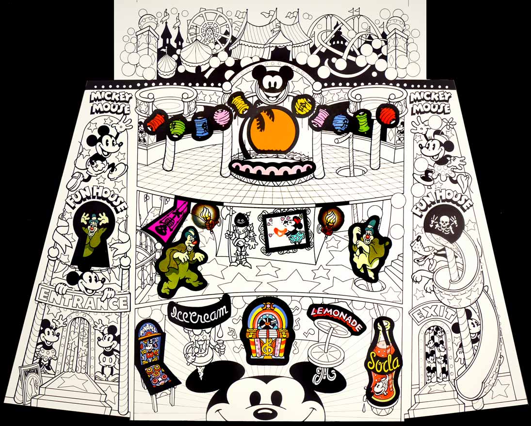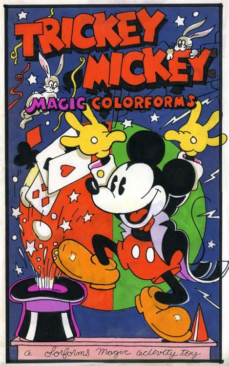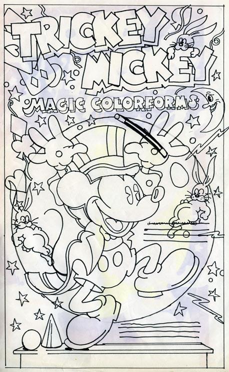 I rushed home and excitedly called Harry. Minutes later, he, who never hesitated to pick up a phone and call anybody, from Paul Rand to Picasso, was calling Kansas City. Without ever seeing Super Pickle, himself, he hired Mike to work on a new project with me. The project involved expanding Colorform's facing in the toy store by expanding their line into activities. Many of these involved Classic Mickey. I did the comps on all of these, and Mike, working in Kansas City, did the finished art.