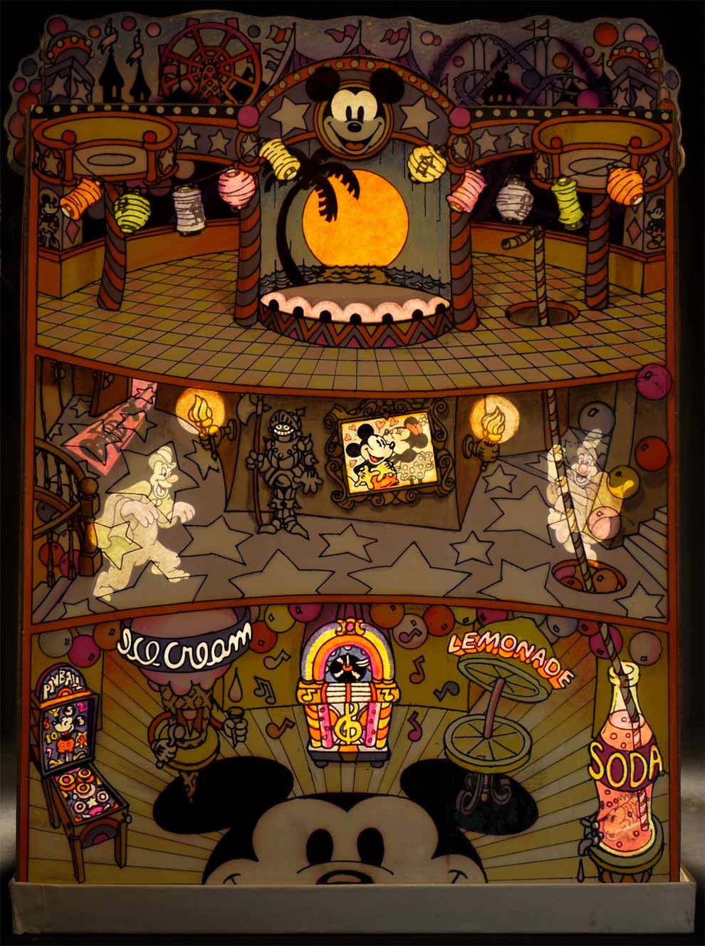 I guess, that’s really all there is to say, except, perhaps, at the risk of appearing immodest, let me be perfectly frank, or better still, perfectly Mel, and confess that I used every trick I knew, intuitively, to make my attempts at reintroducing Mickey, both, as authentic as possible, and, at the same time, feel contemporary. Somehow, I was born with a knack for doing that. The same principle is at play, here in Mouse Heaven. The stuff that I collect, in someone else’s hands, might easily look old and musty. But I do everything I can, through displays that are artistically arranged, and lit dramatically, to make these ancient artifacts appear to be alive again.