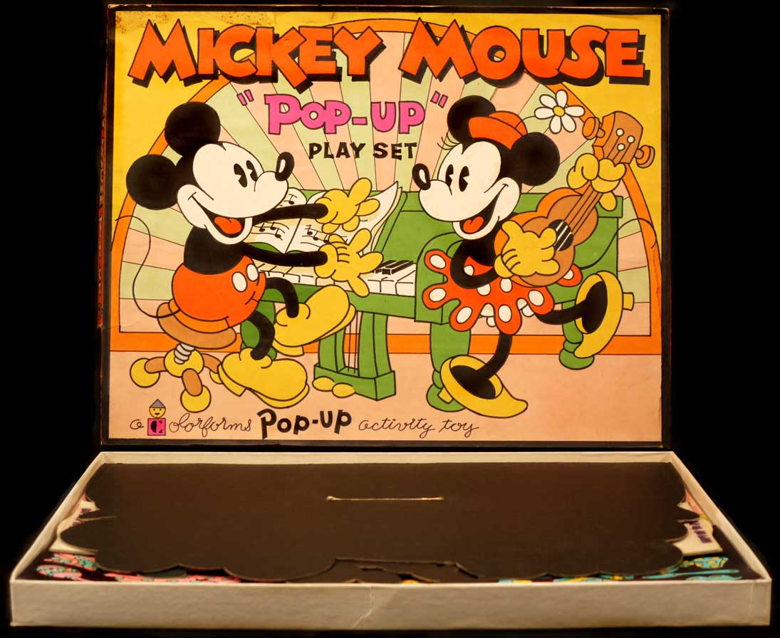 Mickey even appeared in Plasticine, complete with a sheet of nine vacuum-formed molds, sculpted by yours truly. The package was based on pick-up art, created in the 1930s. It would not surprise me if this proved to be the only surviving example of this toy.