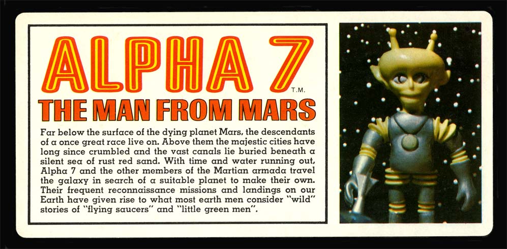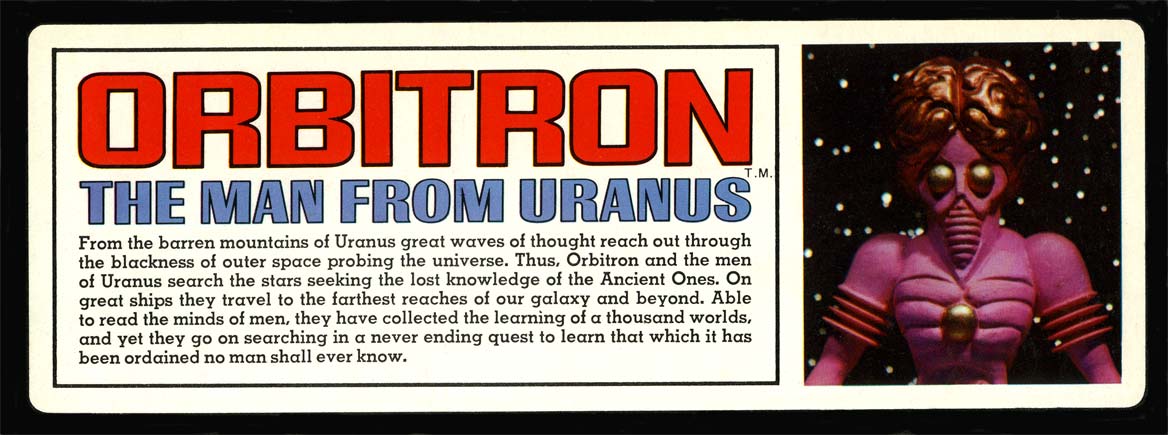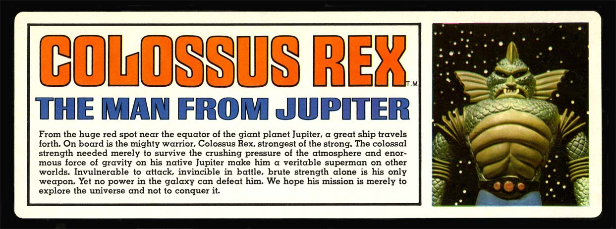 Answer: I did not consider the copy or the stories at all. Not even a little bit, all the while I was working on the figures. In fact, I did not have any idea of what I was going to say, until I actually sat down to write them. Indeed, the whole idea of even having stories was a spontaneous afterthought. I guess I just thought toy packages were supposed to have some kind of copy, so I quickly wrote some. I say quickly, because I don't believe the stories took me much longer to write than they do to read.