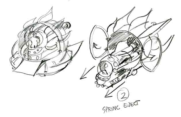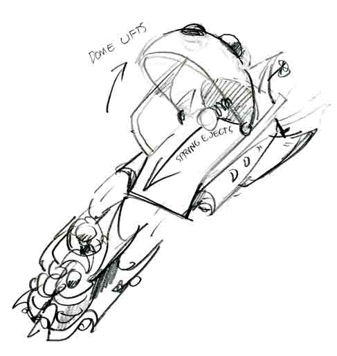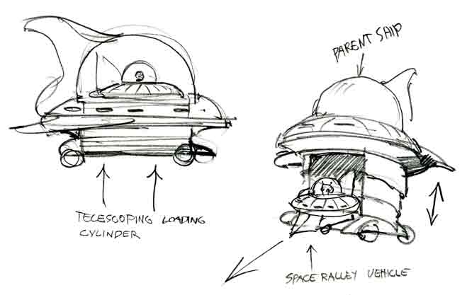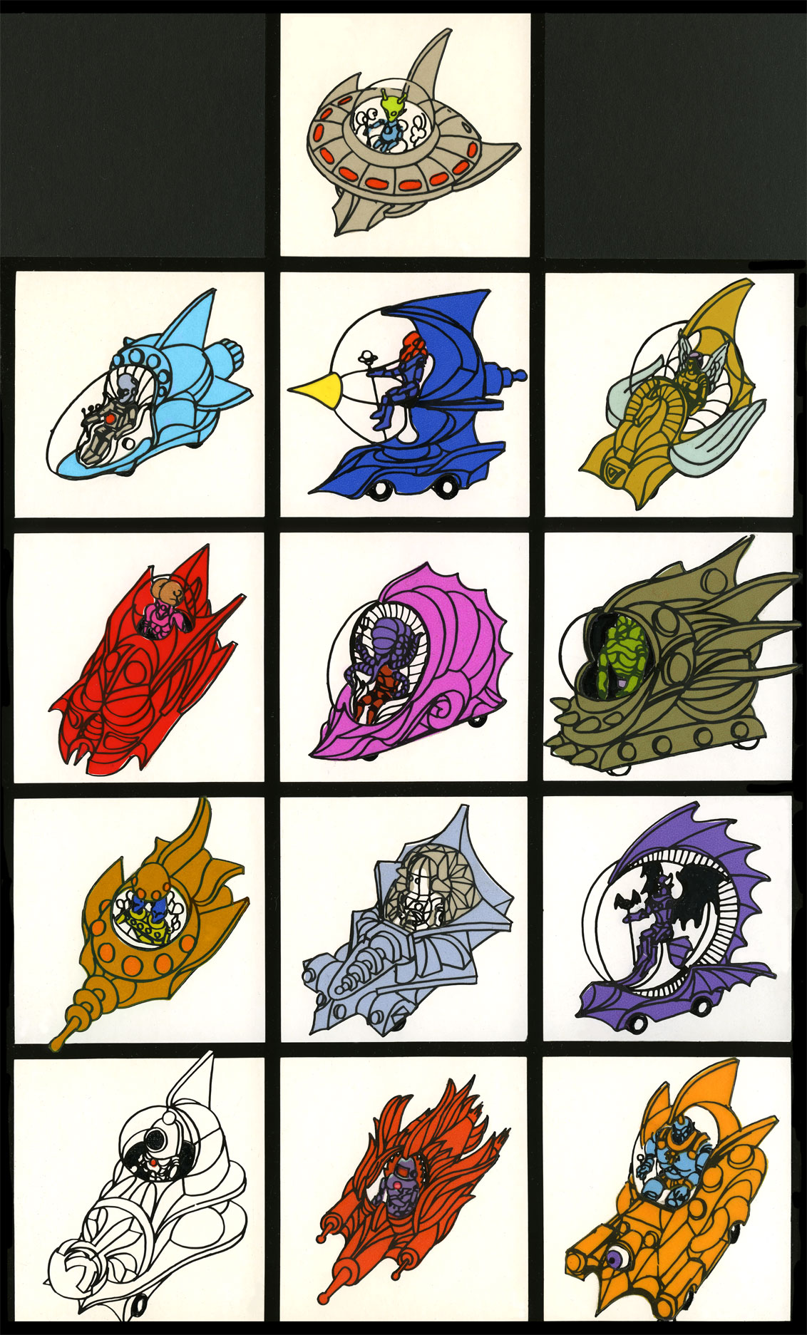 But, by that time, my concerns proved academic, for the Outer Space Men were clearly over. Thus, the case of raw clay models went into the cellar and languished there for several years. Eventually I rescued them and painted them in jewel-like colors, achieving a unique iridescence by using colored ink sprayed over silver. My partners took them to Mattel and tried to sell them as a Hot Wheels line extension. Mattel did not embrace the concept. But, judging from the line of candy colored Hot Wheels they came out with the following year, I guess they liked the colors.