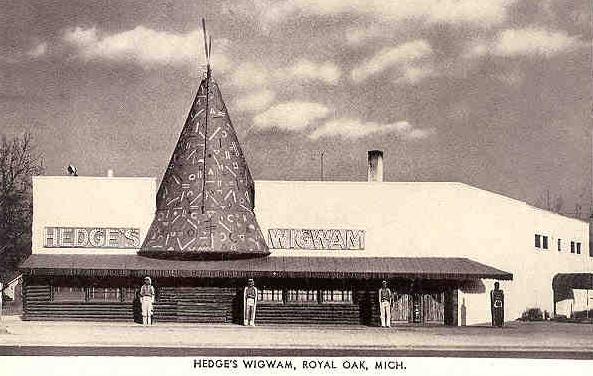 Do you remember Hedge's Wigwam; a towering Teepee of Concrete that stood, just beyond the borders of Sherwood Forest on the other side of Woodward Avenue? It was one of the Seven Wonders of my young World. Why it was called a "Wigwam", when any child knew it was really a Teepee, was a mystery to me, then and now.
