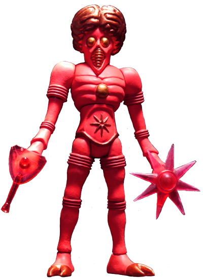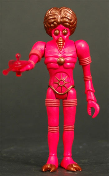 As the photos above display, the finished ORBITRON was going to be Great! Alas, when I first saw him in photos shot at SDCC, I did not feel that way. In the official 4H photo (center) I liked him even less. He even reminded me of those hilariously funky Bullmark figures, which, by the way, were complete Knock Offs, in spite of what some jerk on Wikipedia says. He must have invested in a set!