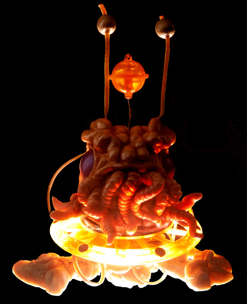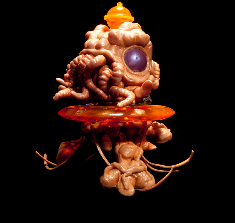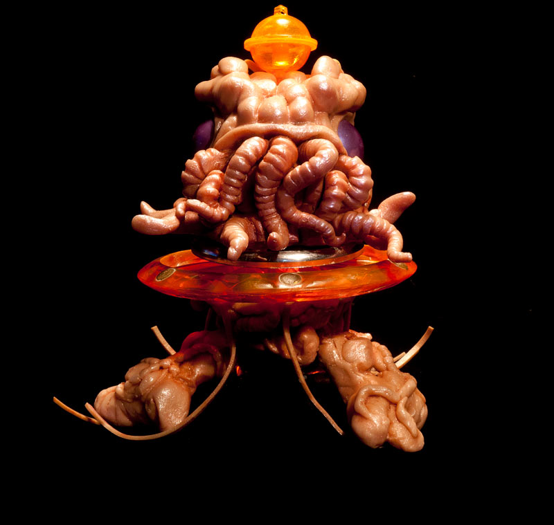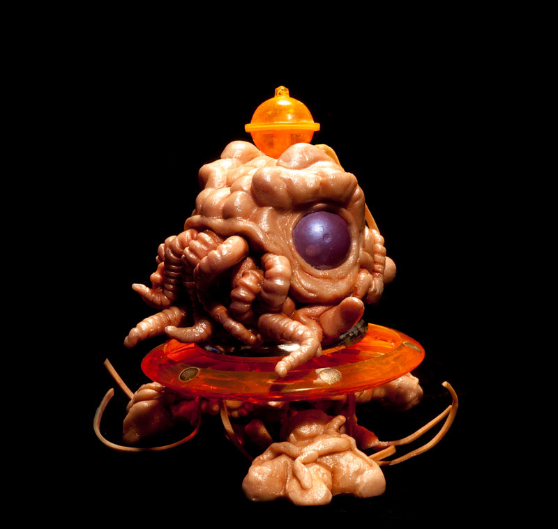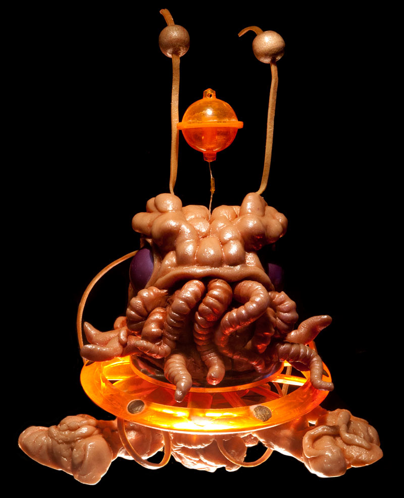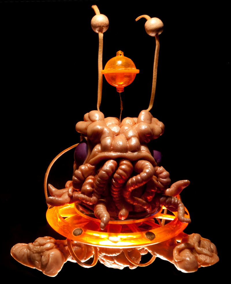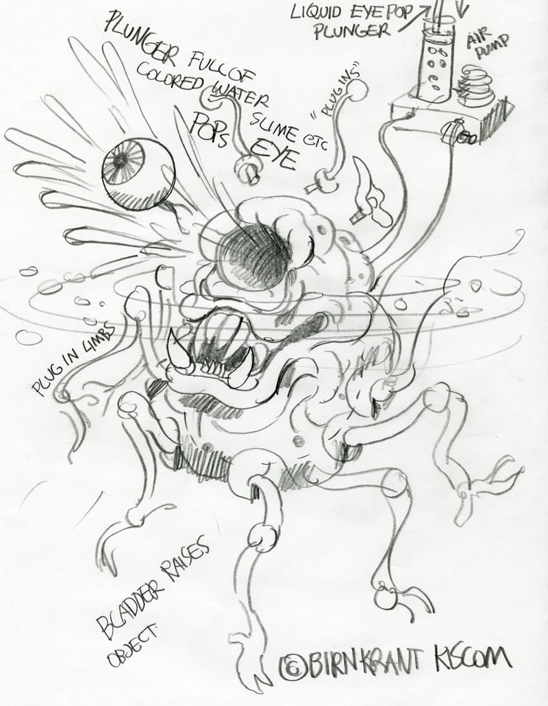 There were no preliminary drawings. I just sat down with Super Sculpey, and made them up as I went along. The first required a wire armature. It was a sort of scary frog. Three of the figures operated by filling them with enough air to lift the creature to the surface of the water. There was a sort of valve on top that was held closed by a small float. When the figure reached the surface, the float would open the valve and release the air. Then, the figure would sink to the bottom, waiting to fill with air, and rise again.