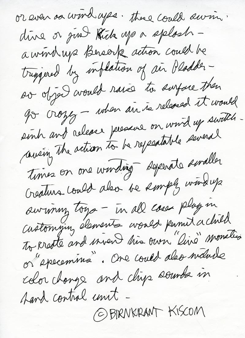 As you might imagine. It’s Alive, went nowhere. It was difficult to demonstrate, needed a container to hold the water, and worked best with a motor. Nonetheless, it was shown to everyone from Mattel to Hasbro, from 1991 to 1994. The last company to see it was Hartz Mountain, a company that actually made aquarium supplies. In the end, the general consensus was that: “It needed a play pattern that boys could understand.”