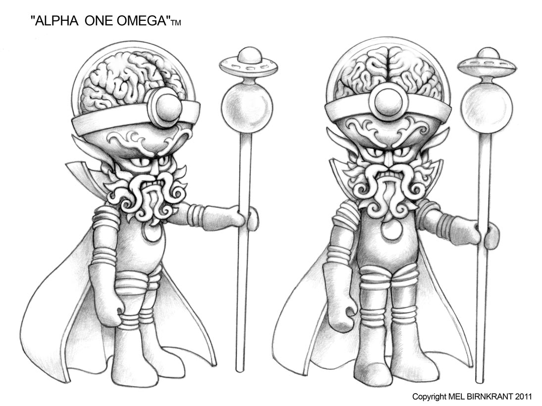 Meet: “ALPHA ONE OMEGA”, Omnipotent Ruler of the Planet Mars. He leads the Martian multitudes through the awesome strength of "Brain Power" alone. Omnipresent and Ominous, his massive mind is able to transmit powerful waves of thought through the vast expanse of Outer Space. His "Brainwaves" can be received, and read, by the antennae on every Martian’s head. Thus, he commands the Martian Armada from a secret base, hidden beneath the Mysterious Face that remains the last visible surface trace of the once Great Race that, somehow, manages to survive and thrive, deep below the barren wastes of the dying Planet Mars.