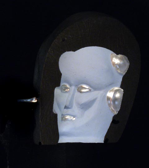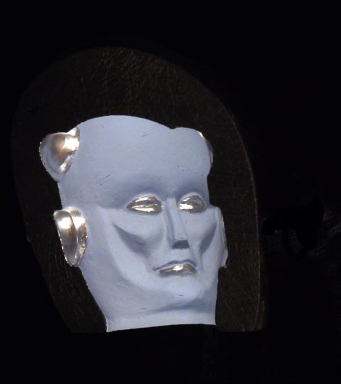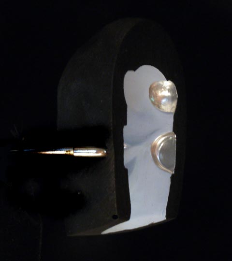 Here are the results, as seen with “the back” turned forward. The hollow interior will then be painted silver, except for the eyes, which will be painted transparent red. The effect will be the same as Variation One, above.