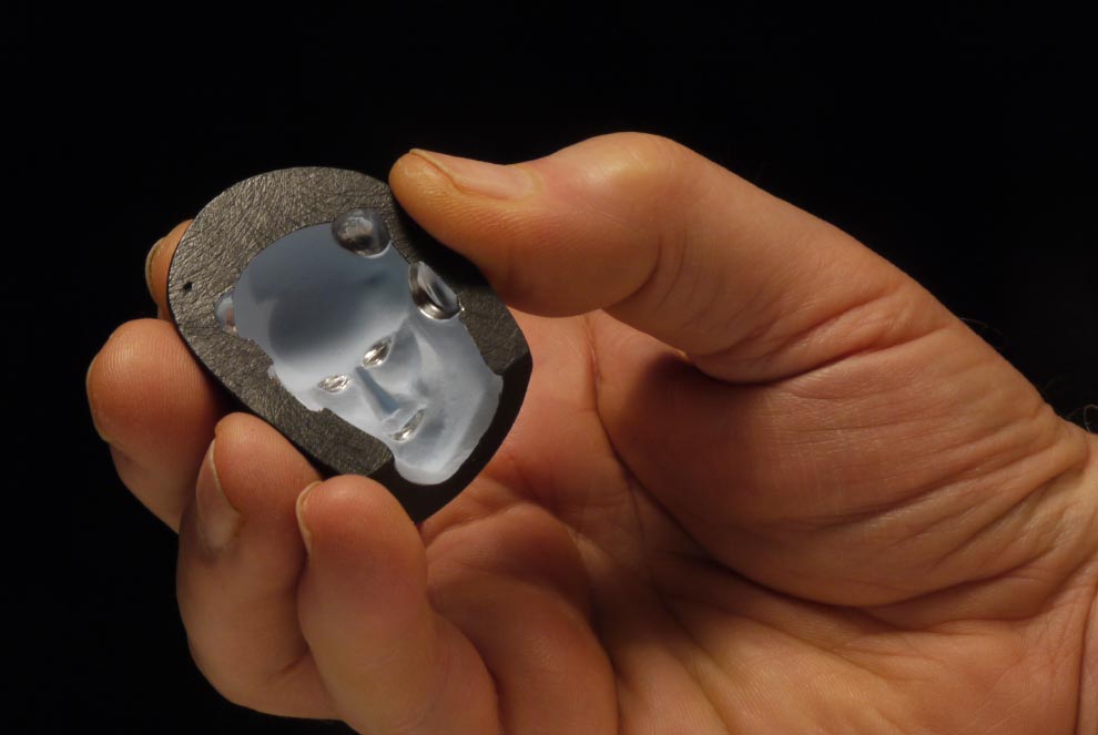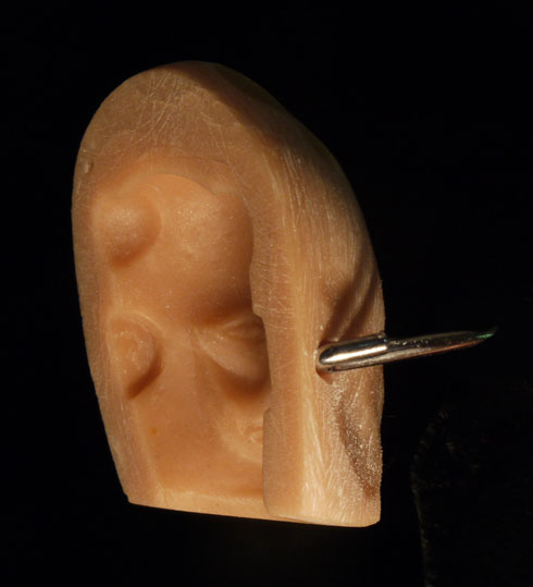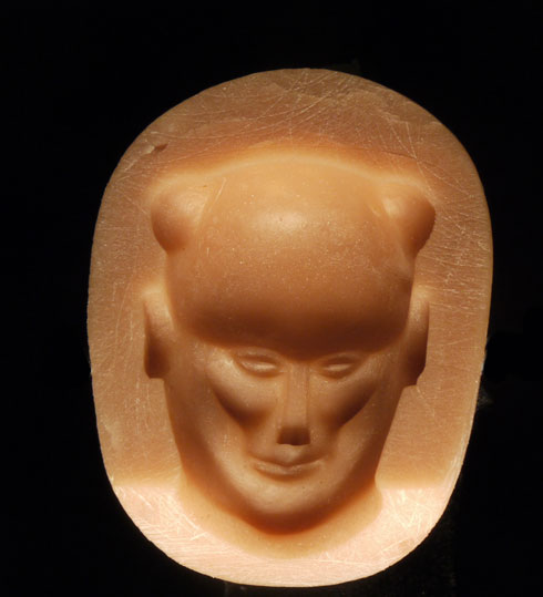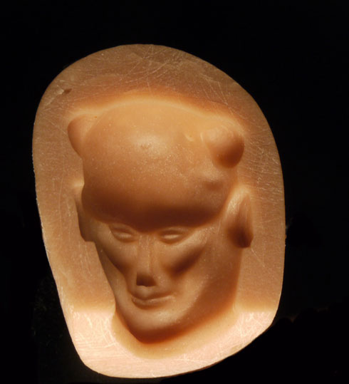 So much for that! I believe the effect is too intangible and elusive to appeal to action figure fans. Nonetheless, I’m going to put some paint in the face cavity, just for fun, and photograph it. I visualized it molded into transparent PVC that would have fit to fill the back half of the helmet, so the face would have appeared to stand in space.