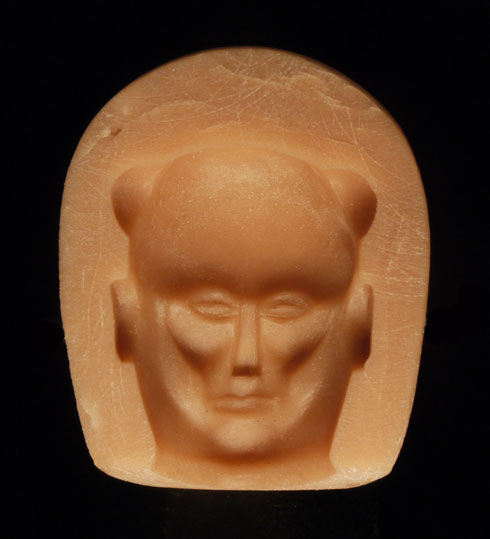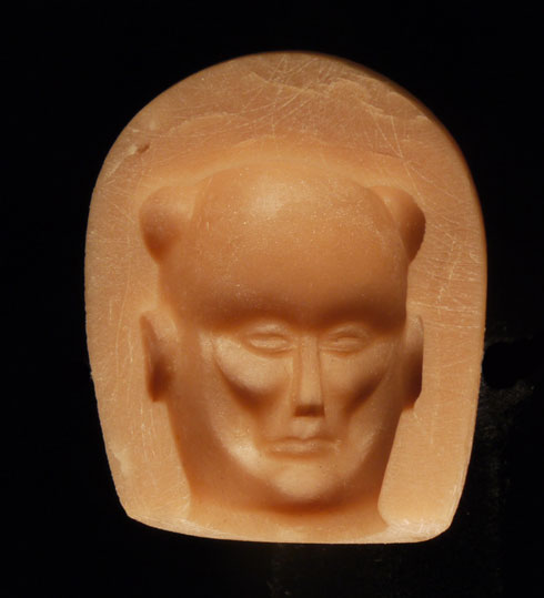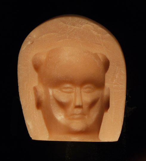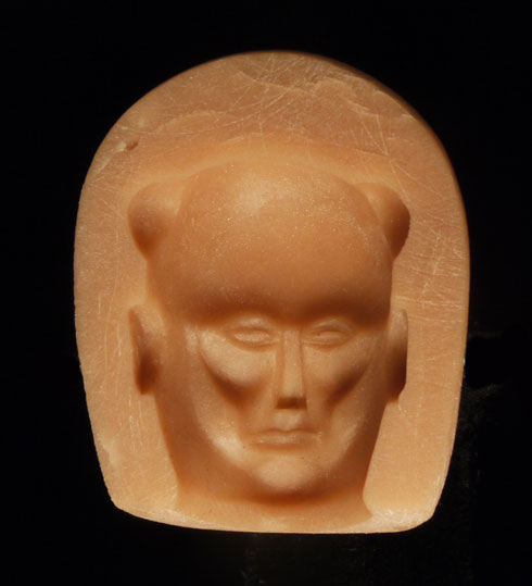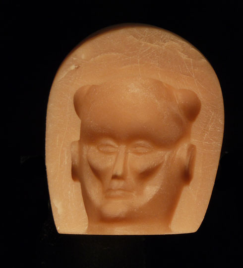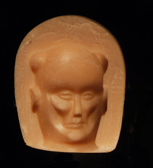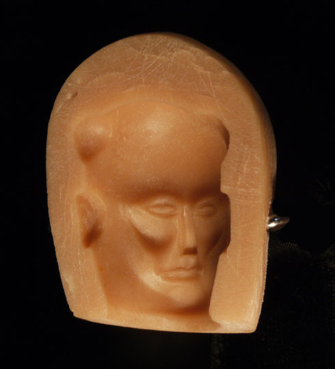 The head on the left was merely pressed into a lump of Super Sculpy. The head on the right is the same lump with a layer of paint added. Here the helmet shaped shell of Super Sculpy is colored black to emulate, when seen against the black background, the effect that transparent PVC would have created.