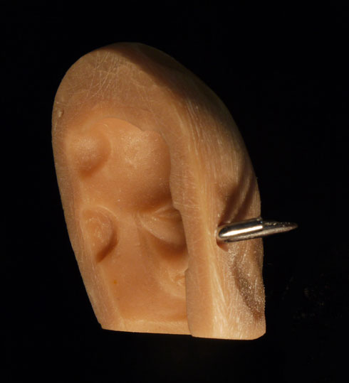 Below is, more or less, a guide for sculpting. The Existing Head remains essentially the same, with the addition of the lightening bolt on top. The ear pieces that were once removable will now become part of the head. Next, an Inner Scull needs to be created, an actual sculpture, smaller than the outer head. The Scull will then be cast into the back side, which will rewmain open, to form a negative image inside the head.