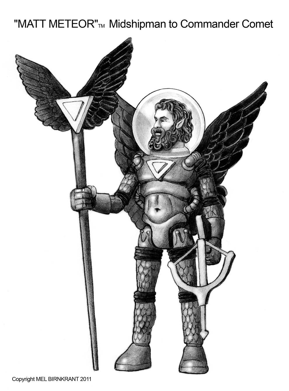 Hummm, I could always combine all of the above, and at the suggestion of The Mighty W-IZ-zard of the Fantastic Forum, base this head on the Godlike visage of Matt Doughty, Master of the Planet GLYOS, Enabler of The Outer Space Men! That Idea sounds as good as any. So, that’s who he is going to be… “MATT METEOR”, “Dark Warrior of VENUS”, “Midshipman to Commander Comet”.
