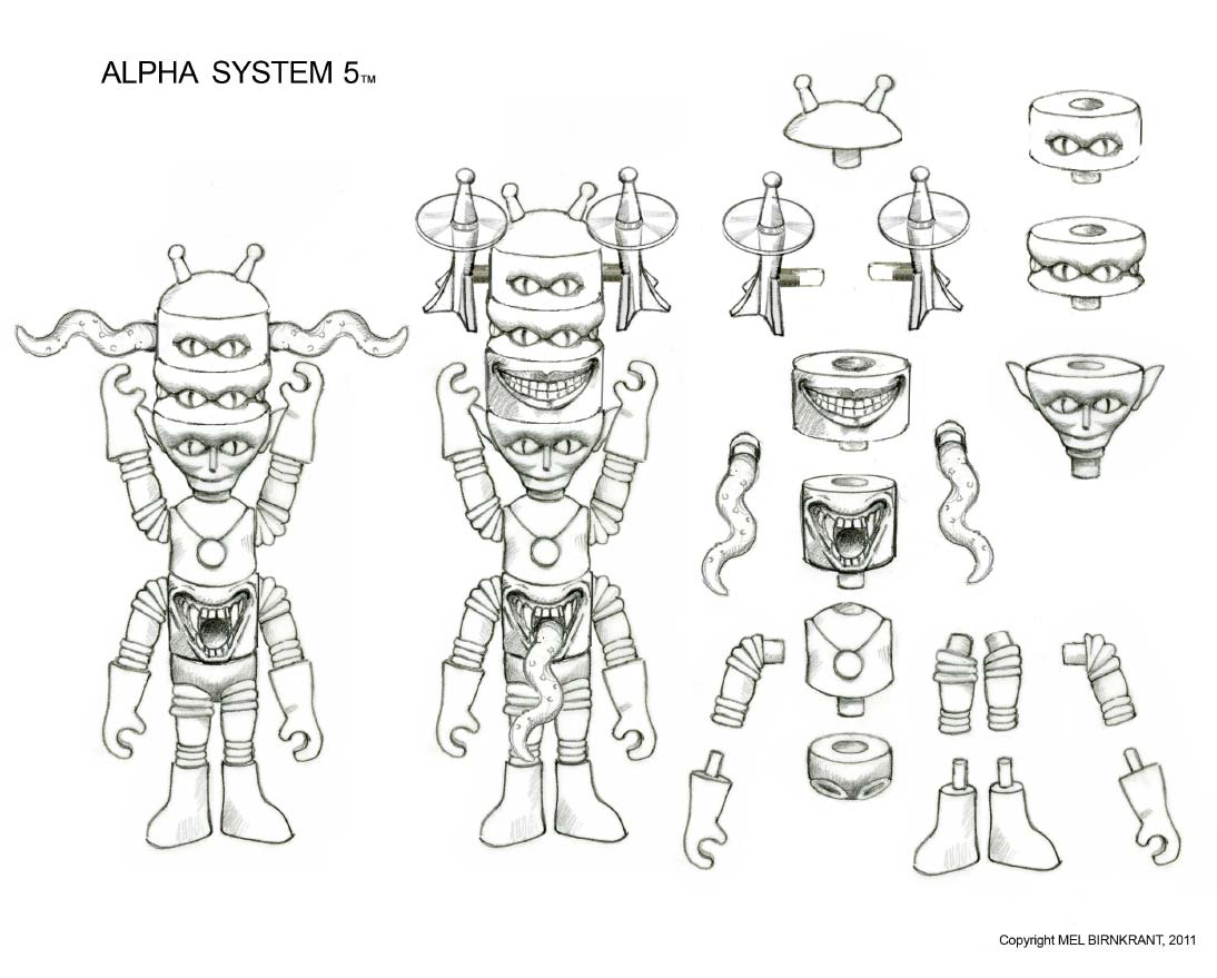 One can easily recognize his style. It pictures one of his highly abstract creations with its helmet split across the middle, horizontally … BINGO! Forget the helmet!, I said. Why not cut the top right off his head? The results of this meeting of minds can be seen below. Suddenly, this tiny fellow takes on the potential of becoming a whole play system on his own.