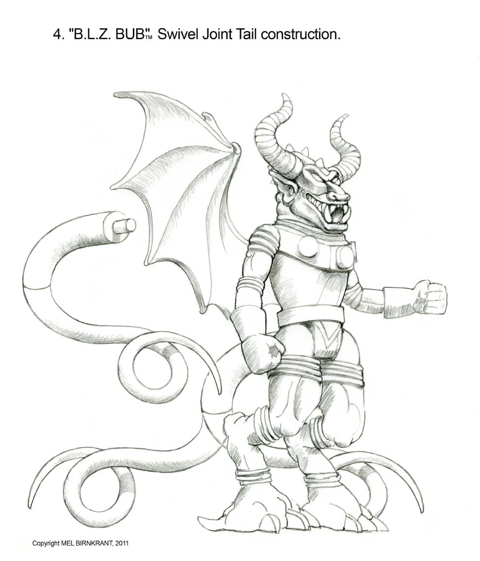My self control did not last long. Here one can trace the evolution of a brand new character that began as a variation, simple and affordable. They say that form follows function, so I had to make those chest plugs I campaigned for stand for something. The tail-hole, too, was begging to be used. He grew more complicated, step by step, until he got new legs as well. As B.L.Z. BUB blossomed into a full blown Demon, my feeble attempts at restraint went all to Hell.