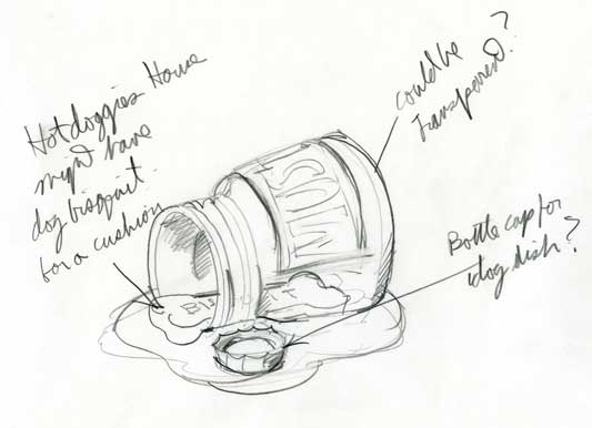 This is Hot Doggie’s dog house. It’s relatively realistic and hints at the simple fact that Bunville could be grown simply by adding accessories that children could either make at home or borrow from mommy’s kitchen.