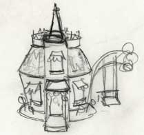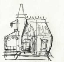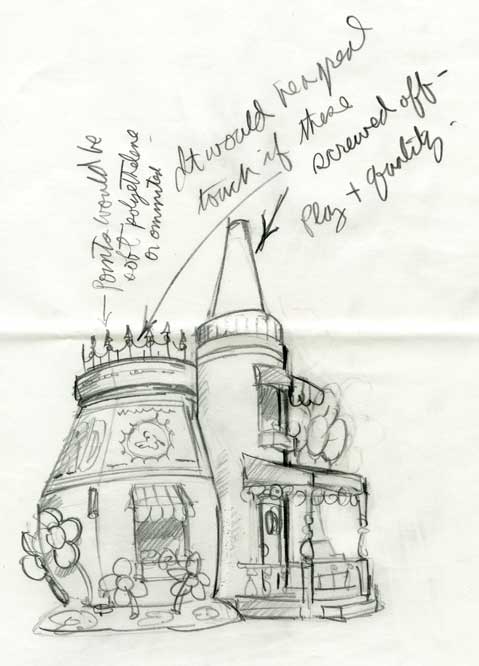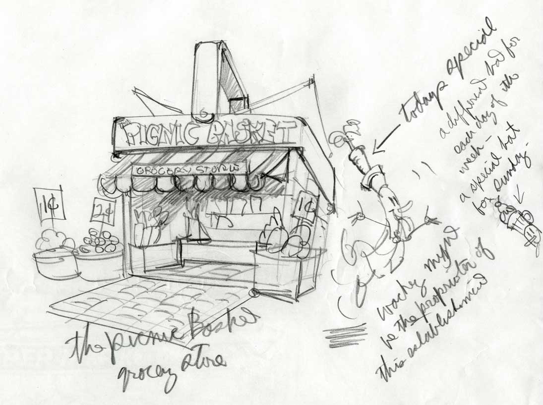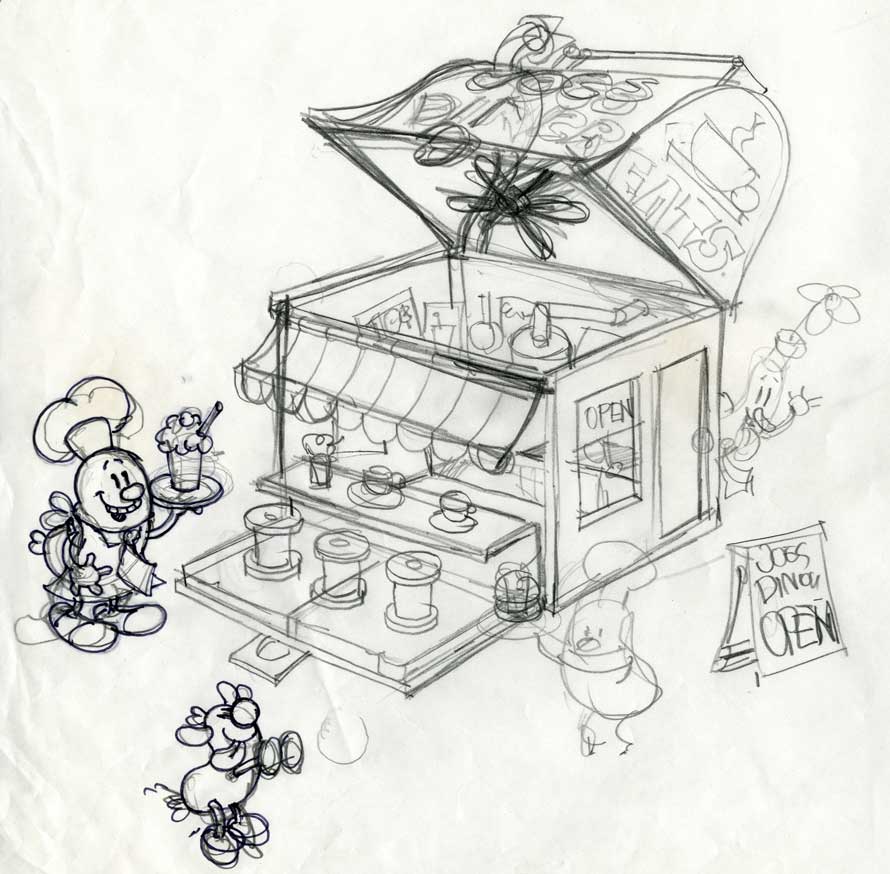 The key play set was Joe’s Diner. Here is one of many pencil drawing that played a role in its design: