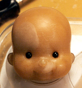He also permitted me to rework the baby head, which I did by adding wax to one of the pantographed reductions. The photo doesn't do justice to it, but, trust me, the heads made from this new one were adorable!