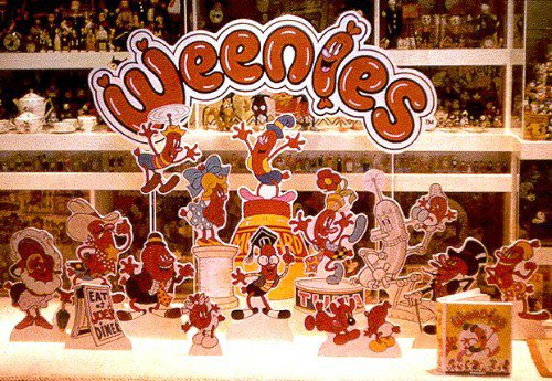 The photo at left is Mel's own Weenies display, which may be all that's left of the illfated project which Coleco almost produced. The Weenies story is in "How Baby Face Was Born." Now, Len Mazzocco was Jill Barad's blue eyed